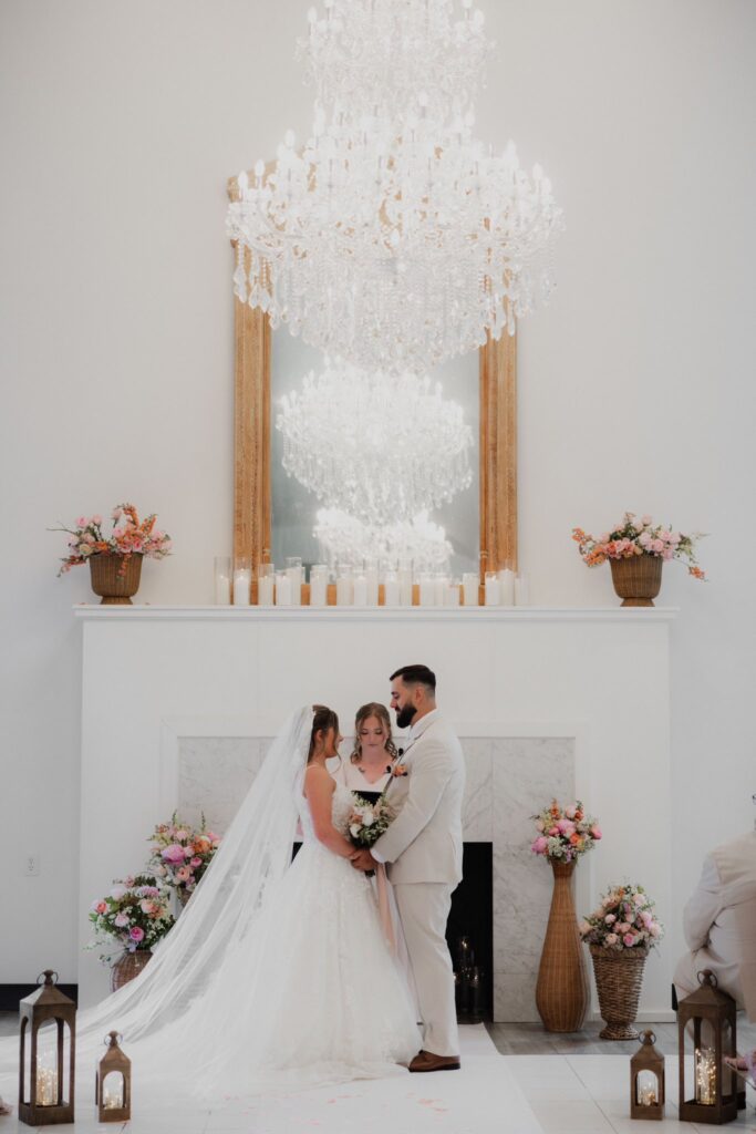 They had a beautiful color palette full of bright summer blooms. Allie’s bouquet was so stunning! Their wedding day was full of love, laughter and amazing family and friends. They used the outdoor courtard for cocktail hour and their reception was inside the reception space. Guests enjoyed the fun, relaxing and STUNNING venue.